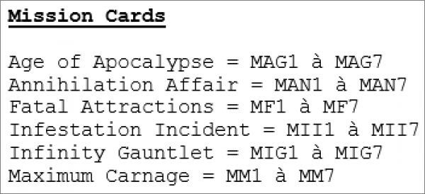 Cartes peu communes *pco : C2, C7, C15, C24, C27, C31, SC3, SC4, SC5, SC9, SC10, SC15, SC17, SC18, SC19, SC20, SC21, SC22, SC23, SC24, SC25, SC34, SC35, SC55, SC57, SC58, SC59, SC60, SC65, SC70, SC75, SC78, SC79, SC80, SC82, SC83, SC84, SC85, SC88, SC89, SC90, SC95, SC102, SC103, SC104, SC105, SC107, SC108, SC109, SC110, SC113, SC114, SC115, SC128, SC129, SC130, SC140, SC145, SC158, SC159, SC160, SC180, SC184, SC185, SC190, SC193, SC194, SC195, MAG1, MAG2, MAG3, MAG4, MAG5, MAG6, MAG7, MAN1, MAN2, MAN3, MAN4, MAN5, MAN6, MAN7, MII1, MII2, MII3, MII4, MII5, MII6, MII7, U4, U5, U7, U8, U10, U18