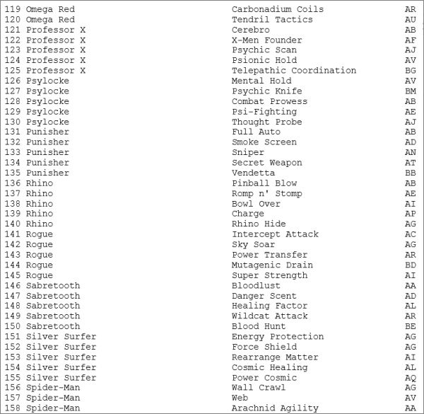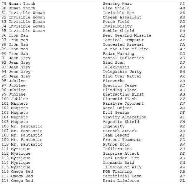 Fleer : C1 à C39, SC1 à SC195, MAG1 à MAG7, MAN1 à MAN7, MF1 à MF7, MII1 à MII7, MIG1 à MIG7, MM1 à MM7, P1 à P28, U1 à U42, G1 à G4