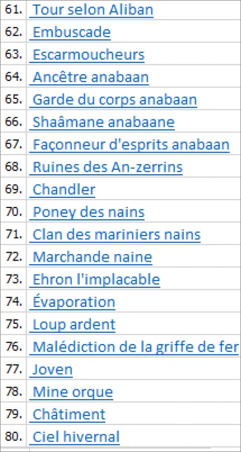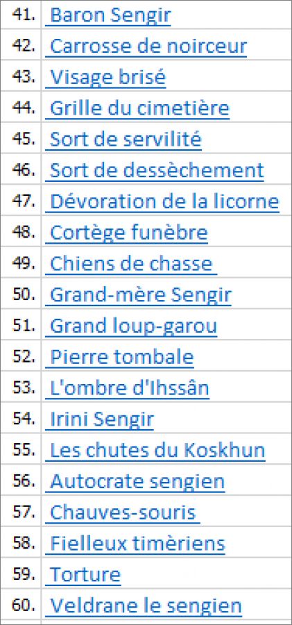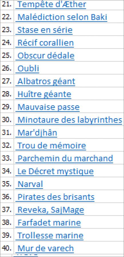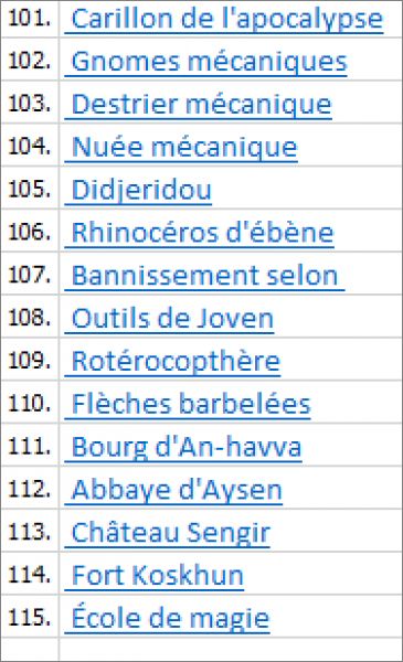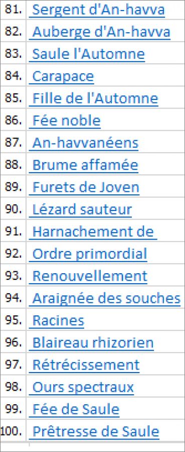 Cartes peu communes *pco : 1, 7, 12, 16, 21, 28, 38, 39, 45, 49, 53, 54, 56, 58, 73, 74, 78, 79, 82, 94, 95, 98, 111, 112, 113, 114, 115