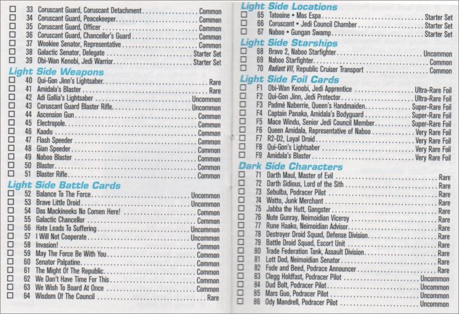 Cartes peu communes *pco : 13, 14, 15, 16, 17, 18, 19, 20, 21, 22, 23, 24, 25, 42, 43, 52, 53, 56, 57, 68, 83, 84, 85, 86, 87, 108, 109, 110, 111, 112, 113, 114, 115, 116, 124, 125, 126, 132, 134, 138