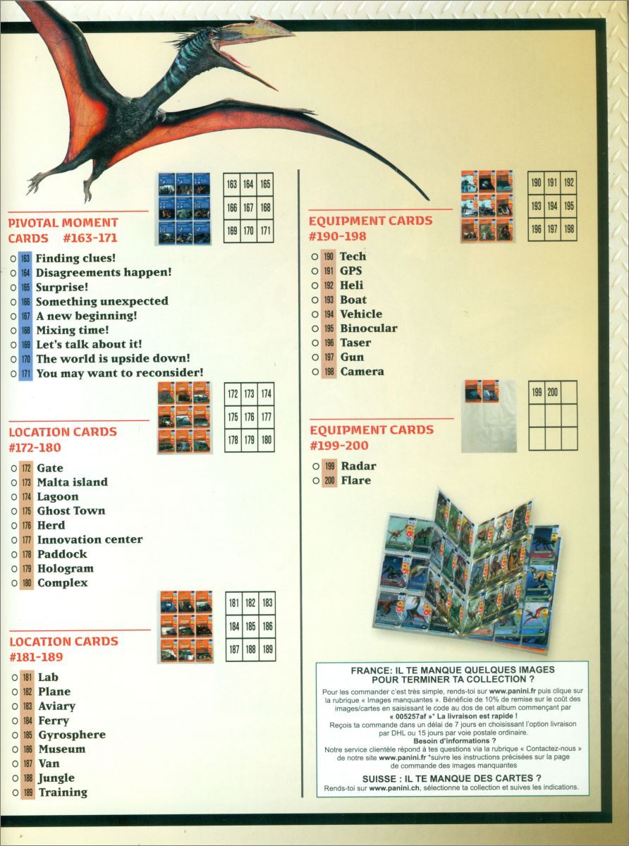 Panini : 1 à 200, R (= règles du jeu), LE1 à LE10 (= édition limitée)